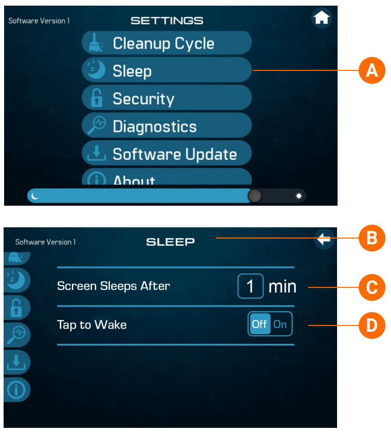 2 – Appuyez sur Sommeil (A) pour afficher l’écran de Sommeil (B).